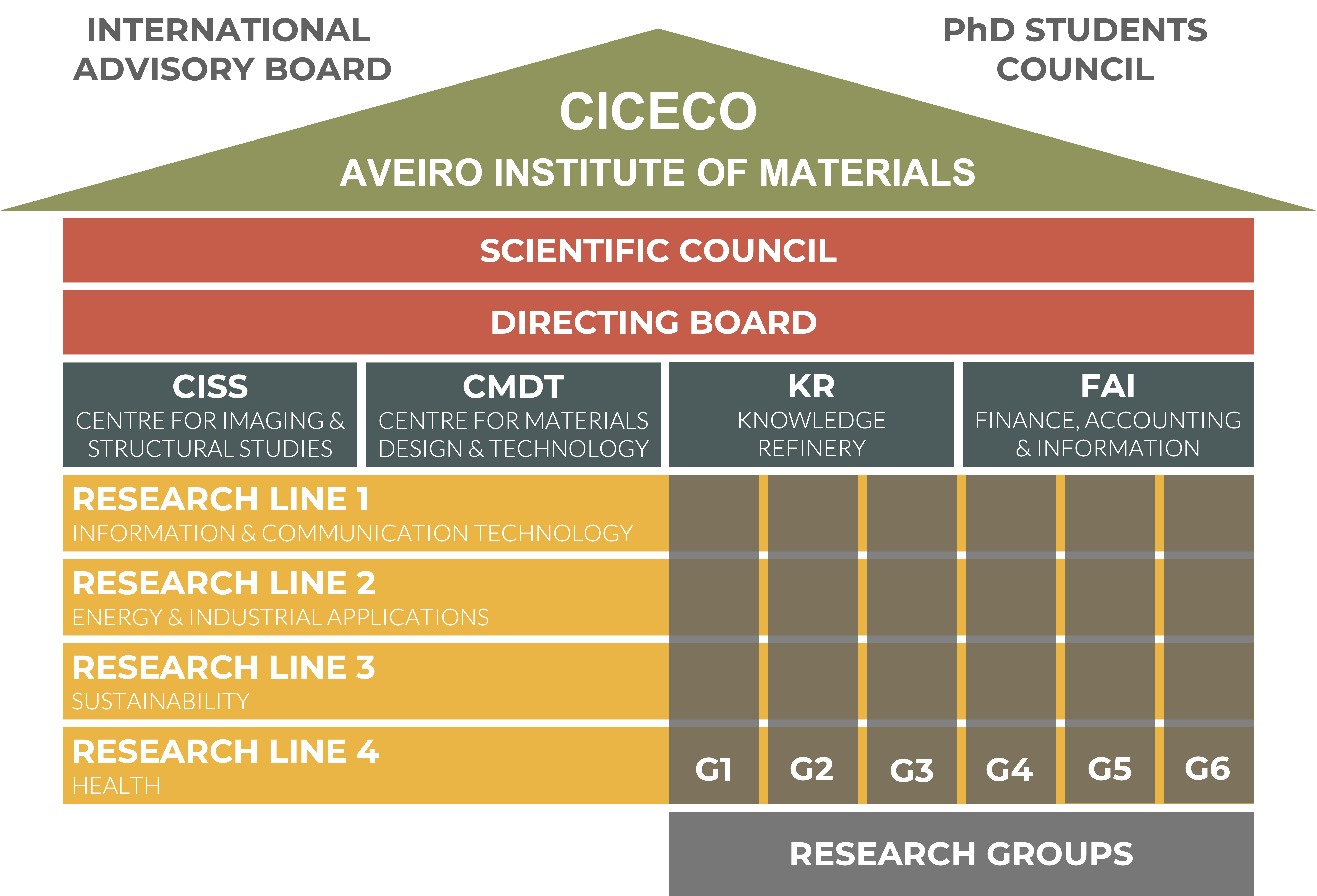 A estrutura é responsável por apoiar os investigadores na gestão de projetos, fornecendo operações de contabilidade financeira, compras e gestão de recursos humanos. Também auxilia a direção na coleta, curadoria e gestão de informações, preparação de relatórios e candidaturas, comunicação e otimização de processos.